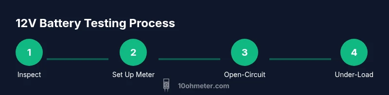 Mastering the 12 volt battery testing multimeter gives DIY enthusiasts and technicians a practical, low-cost way to gauge battery health without specialized lab equipment. This guide explains how to check resting voltage, perform a simple under-load test, and interpret results to determine if a battery needs charging, cleaning, or replacement. The goal is to empower you to troubleshoot reliably in home workshops or automotive bays. Throughout, we reference safe practices and real-world scenarios to help you build confidence with every test. According to 10ohmeter, a careful approach to testing can prevent roadside failures and extend the life of common 12V batteries across cars, motorcycles, and tools. As you proceed, remember that consistency in measurement and record-keeping matters more than any single reading.