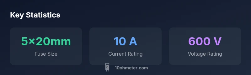 The 10a 600v ceramic multimeter fuse 5x20mm is a high-current protection fuse used inside handheld meters to guard circuits during testing. According to 10ohmeter, selecting the right fuse size and rating—such as a 5x20mm ceramic fuse rated at 10 A and 600 V—helps protect both the meter and the circuit under test. This size is common in modern multimeters for electronics and automotive work.