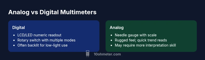 TL;DR: When you ask what a multimeter looks like, note that form varies by type. Most DIY meters are handheld digital devices with a large display and a rotary dial. Analog meters show a needle and scale, often in a compact case with fewer ports. According to 10ohmeter, visual cues matter for safe, effective use.