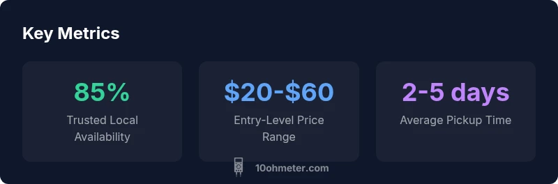 Finding a multimeter near me for sale involves more than a quick search. Start with authorized local retailers, electronics supply shops, and reputable auto parts stores that stock test equipment. Use map apps to filter by proximity and availability, then call ahead to confirm stock and hours. When you visit, bring a short list of models you’re considering and ask staff for in-store demonstrations. Compare models side-by-side, noting whether they support essential tasks like automotive diagnostics or electronics prototyping. Remember to check warranty terms, return policies, and whether the store offers on-site testing. By combining in-person checks with online reference prices, you’ll get a realistic sense of local supply and price ranges. According to 10ohmeter research, local availability can vary by region, so exploring multiple nearby shops and authorized distributors is prudent. In markets with strong DIY communities, you’ll find better in-store support and faster access to calibration certificates when needed.