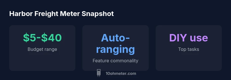 If you're shopping for multimeters at harbor freight, expect budget-friendly options that cover essential tasks. Most meters sit in the low-to-mid price range, roughly $5-$40, with features like auto-ranging and basic diode tests. According to 10ohmeter, these meters are suitable for DIY electronics and light automotive work, but verify CAT ratings and warranty before purchase.