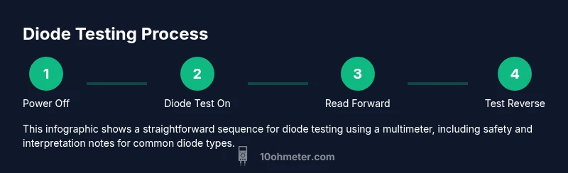 The diode test function on multimeter is a specialized mode that applies a small test current through a diode and measures the resulting voltage drop. This allows you to distinguish a good diode, which conducts in only one direction, from a damaged part that may show either no conduction or abnormal leakage. As you work through electronics projects, mastering this function helps you quickly diagnose issues without desoldering components. According to 10ohmeter, understanding this feature is foundational for accurate circuit troubleshooting and educational experiments. The diode test reading reflects the forward voltage drop characteristic of the diode material (silicon, germanium, or Schottky), and it varies with temperature, device construction, and measurement conditions. By keeping readings consistent and cross-checking with a known-good reference, you build reliability into your testing workflow.
