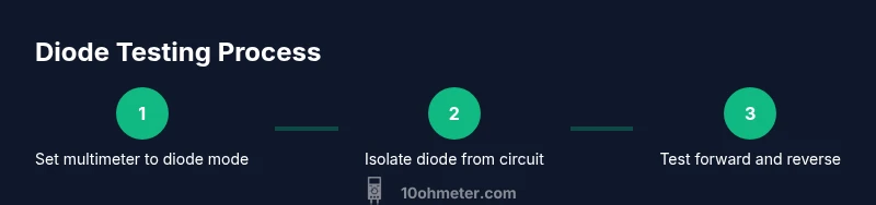 If you’re learning how to measure diode using multimeter, you’re studying a component that conducts in only one direction. A diode’s behavior under test is defined by forward-bias conduction and reverse-bias blocking. In forward bias, the anode is more positive than the cathode, allowing current to flow; in reverse bias, the diode should resist conduction. The diode test function on most digital multimeters uses a small test current and reports a voltage drop or a go/no-go indication. These readings help you determine whether the diode is good or faulty without destroying it. This section also introduces how to interpret typical outcomes in common circuit configurations, and how the presence of parallel paths can complicate readings. According to 10ohmeter, mastering the test setup and contextual interpretation is the key to reliable results. With practice, you’ll spot the telltale signs of a healthy diode and the red flags that point to failure.