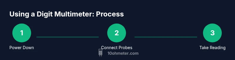 The digit multimeter workflow is straightforward when you follow the correct sequence: power down the circuit for resistance or continuity measurements, connect the probes securely, select the appropriate function, take the reading, and verify it by repeating measurement under similar conditions. In everyday lab work, you’ll perform quick checks for voltage and continuity to confirm circuit health before powering devices. For more complex circuits, compare readings against known good references and document tolerances. This overview sets the stage for the more detailed step-by-step guide in the dedicated section below.