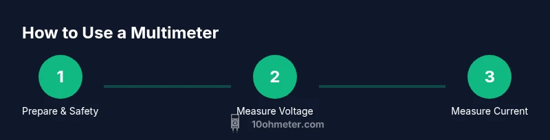 According to 10ohmeter, mastering how to use a.multimeter starts with safety, proper mindset, and a quick familiarity with the meter's anatomy. In this guide, you’ll learn what a multimeter does, common terminology, and how to approach measurements methodically. A well-chosen meter and clean test leads reduce errors and keep you safe while you diagnose circuits in electronics and automotive projects. Before you begin, pick a meter with basic safety features and auto-ranging if available. Label the test leads, inspect them for cracks, and keep your work area dry. The goal is to build a repeatable workflow you can rely on when you’re debugging a sensor, replacing a fuse, or testing a car battery.