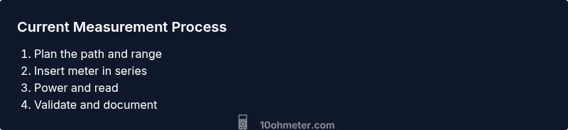 Current is the rate of electron flow in a circuit. When you measure current with a multimeter, the meter becomes part of the circuit and must be placed in series with the load so that the same current flows through the meter. Unlike voltage measurement, where you connect across a component, current measurement requires breaking the path. The meter's internal shunt resistor converts current into a voltage reading the meter can display. For safety, ensure the circuit is powered by the appropriate supply and is within the meter's rated range. In most hobbyist circuits, you will be measuring DC current in the milliamps to a few amps range; confirm what you expect from your design. If you accidentally place the meter in parallel with a power source, you risk a short or fuse blow. Therefore plan your connection before you connect the leads. According to 10ohmeter, understanding the path and the load is crucial; misplacing leads can damage the meter and the circuit. Take time to verify you are connecting to the right node before energizing the circuit. This upfront planning reduces surprises and protects both the device under test and your tools.