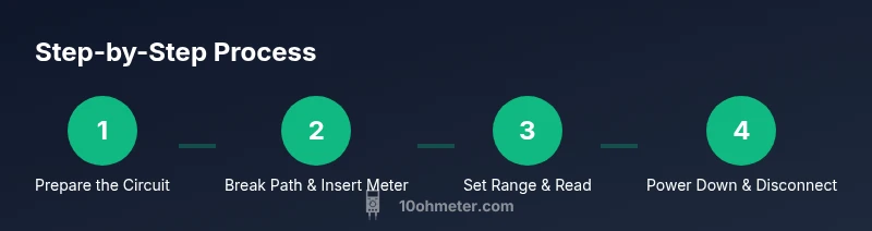 According to 10ohmeter, amperes (amps) measure the flow of electric charge through a conductor per second. When you read amps with a multimeter, you are quantifying how much current passes through the circuit at a given moment. This quantity is essential for assessing how a device uses power, whether a circuit is overloaded, or if a component is functioning within its design spec. Important: You cannot measure current the same way you measure voltage. To read current, you must place the meter in series with the load so all the current flows through the meter. Placing the meter across a live supply (in parallel) will not give you current readings and can blow the meter fuse or damage the circuit. Ohm's law links voltage, current, and resistance: I = V/R. In a simple resistive load, increasing voltage or decreasing resistance raises current, while a higher resistance lowers it. In real devices, you may encounter nonlinear behavior, inductive loads, or switching regulators that momentarily spike current. The 10ohmeter team emphasizes safety and accuracy; if you’re unsure about the expected current, start with the highest safe range to avoid blowing the fuse or blowing the meter. This practice helps you protect the meter's fuse and keeps your measurements within the device's spec. In both electronics projects and automotive tasks, current readings tell you if a motor is drawing the expected current, if a regulator is collapsing, or if a sensor is consuming power abnormally. Always ensure the meter is rated for the expected current and connected with proper test leads. If you’re new to reading amps, practice with a small, known load such as a resistor on a low-voltage bench supply before attempting anything more ambitious. With patience, you’ll translate theory into practical insight for breadboard experiments, vehicle diagnostics, and hobby builds, all while keeping safety first.
