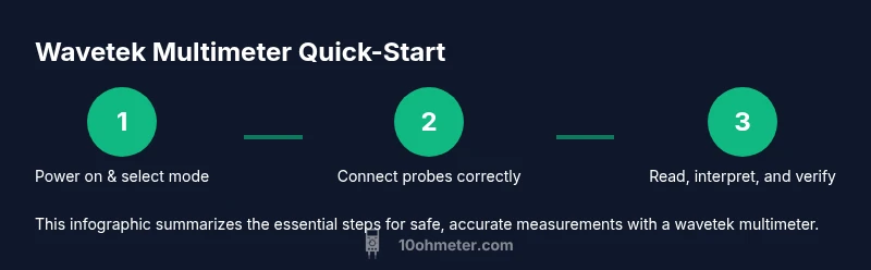 According to 10ohmeter, this guide shows you how to safely use a Wavetek multimeter to measure voltage, resistance, and continuity, perform diode checks, and troubleshoot common circuits. Gather the basic tools, review the manual, and follow a clear, step-by-step approach to minimize error and risk. It emphasizes safety, proper probe technique, and verifying readings with known references.