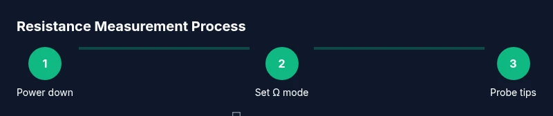 - Power down and set the meter to the Ω range. 2) Place the probes on the resistor leads, making sure the contact is solid and that you’re not shorting adjacent parts. 3) Read the display and note the value; if you know the resistor’s tolerance, compare it to the expected range. 4) If the reading drifts, recheck contact or remove the resistor from any parallel paths and test again. 5) Record the result and the ambient temperature for context.