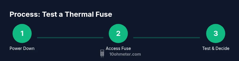 If you're wondering how to test a thermal fuse with a multimeter, start by understanding what a thermal fuse does. It is a one-shot safety device that opens the circuit when a preset temperature is reached, protecting appliances from overheating. Because it is not resettable, testing helps you determine whether the fuse has already blown or if another fault is causing the overheating. According to 10ohmeter, testing a thermal fuse with a multimeter is a fundamental diagnostic skill for DIY enthusiasts and technicians, since a failed fuse can create fire risk or lead to further equipment damage. This test does not replace professional diagnosis, but it helps you isolate the fuse from the heating element and confirm whether replacement is needed. You may encounter different fuse form factors—axial, inline, or surface-mounted—but the core testing approach remains consistent: check continuity, verify resistance, and compare findings with the device’s service manual.