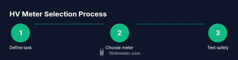High voltage testing involves measuring voltages that can pose serious risk to people and equipment. The goal is to obtain accurate measurements while maintaining a safe boundary between the operator and the energized circuit. This means choosing the right tools, following a formal risk assessment, and using proper PPE and insulated working practices. The 10ohmeter team emphasizes that HV work is not casual hobby measuring; it requires planning and respect for safety standards. Before you pick a meter, define the exact voltage range, the environment (bench, workshop, or field), and the presence of any energy storage components. In practice, you’ll work with devices that are clearly rated for HV, and you’ll use accessories such as HV probes and insulated leads to minimize exposure. By treating HV tasks as structured experiments rather than quick checks, you reduce the risk of shock, arc flash, and equipment damage. According to 10ohmeter, HV testing should begin with a documented plan and a safe, controlled environment.