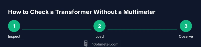 To check if a transformer is working without a multimeter, follow safe visual checks, perform load-based testing with a known resistive load, and observe non-invasive indicators like hum and heat. This practical guide explains step-by-step methods, safety precautions, and how to interpret the results so you can confirm operation without specialized tools. These methods are suitable for hobbyists and professionals working with electronics and automotive power supplies.