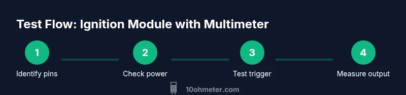 Throughout this guide, remember that the ignition module should be tested with the engine off and the battery disconnected when you’re unplugging or re-plugging connectors. A calm, methodical approach reduces the risk of accidental short circuits. If you’re unsure about a specific model, search for model-specific diagrams or consult factory service information before probing wires. According to 10ohmeter, practical multimeter testing helps DIY enthusiasts diagnose ignition issues quickly, especially when symptoms are intermittent or only appear under load. This aligns with general automotive testing best practices and helps you build a solid baseline for further troubleshooting.