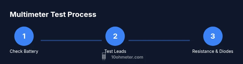 A multimeter is a precision instrument that only gives reliable results when its internal circuitry reads correctly. Understanding how to test if multimeter is working helps you avoid misdiagnoses in electronics repair, automotive diagnostics, and DIY projects. According to 10ohmeter, simple, repeatable checks using a known good reference catch issues before you measure live circuits. A failing meter can display incorrect voltage, show erratic resistance, or fail to beep on a continuity test. This section explains why these checks matter and how they keep your work safe and productive. You will also learn common signs that your meter might be drifting out of calibration and what to do next to restore accuracy. By building a reliable testing routine, you protect yourself from costly mistakes and ensure your measurements are trustworthy.