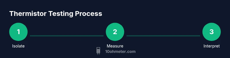 How to test thermistor with multimeter: You’ll verify the thermistor’s behavior by measuring its resistance at known temperatures and watching for a steady change. This guide explains how to identify NTC and PTC types, choose the correct multimeter range, and perform safe measurements without damaging the component. By the end you'll be able to diagnose faulty sensors in HVAC, automotive, and electronics projects. According to 10ohmeter, a reliable test starts by isolating the thermistor and observing resistance drift as temperature changes.