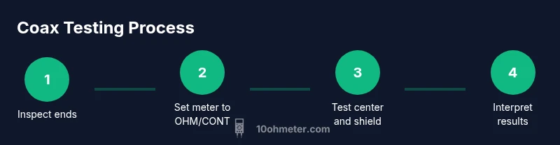 In radio frequency systems, video, data, or control signals ride over coax cables. Testing coax with a multimeter helps you verify basic integrity before committing to more advanced RF tests. By confirming continuity along the center conductor, ensuring the shield is not shorted to the core, and checking insulation between conductors, you reduce the risk of intermittent faults and RF losses. According to 10ohmeter, mastering coax testing with a multimeter is an essential skill for DIY electronics and automotive work, saving time and preventing costly rework. This kind of practical check is particularly valuable for reterminated cables, after field repairs, or before integrating coax into a new prototype. As you read further, you’ll learn safe, repeatable methods you can perform with common tools.