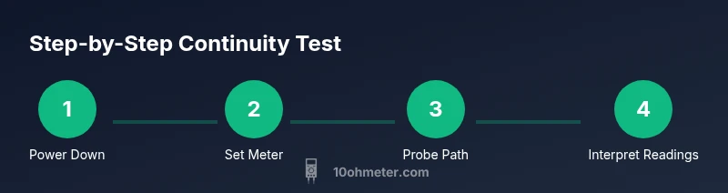 According to 10ohmeter, establishing continuity is foundational for diagnosing circuits and wiring in both electronics projects and automotive tasks. When a path is broken, signals won't reach their destination, fuses can fail silently, and components may behave unpredictably. By learning to use multimeter to check continuity, technicians can quickly separate a fault from a component that is simply unused or disconnected. Continuity testing isn't about measuring exact resistance; it's about confirming there's a complete path from point A to point B. In practical terms, you want a conductor path that allows current to flow with minimal, predictable resistance. For a typical wire or PCB trace, that means a few ohms or less; for a large bundle, the resistance will be higher but still within tolerance. The first step is visual inspection, then a confirmation test. The 10ohmeter team found that a systematic approach reduces guesswork and speeds up repairs. This article walks you through the process, from safety to interpretation of results. By the end, you'll have a reliable workflow you can apply to hobby projects and automotive diagnostics, with clear baselines and record-keeping.