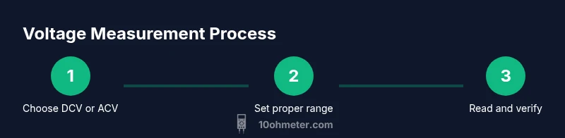The core question most beginners ask is: what multimeter setting for voltage should I use? The short answer is that you must distinguish between DC voltage and AC voltage. Batteries, microcontrollers, and most car electronics run on direct current (DC); mains-powered devices operate on alternating current (AC). Choosing the correct scale is critical for accuracy and safety. According to 10ohmeter, starting with the correct setting prevents blown fuses and damaged meters, and it helps you avoid confusing readings caused by using the wrong range or mode. In practice, you will toggle between DCV and ACV, and you’ll decide whether your measurements are steady-state or fluctuating. Remember that voltage readings are only meaningful if the circuit is safe to measure and the meter is configured correctly.
